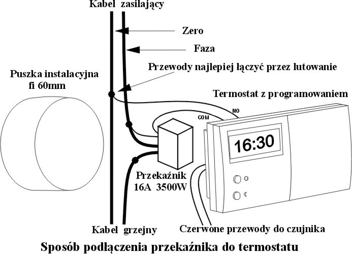 Przekaźnik stosuje się wtedy gdy moc maty grzejnej przekracza 1000W