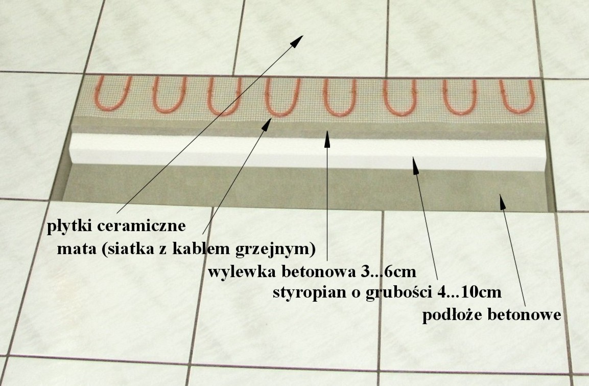 Przekrój posadzki z matą grzejną |