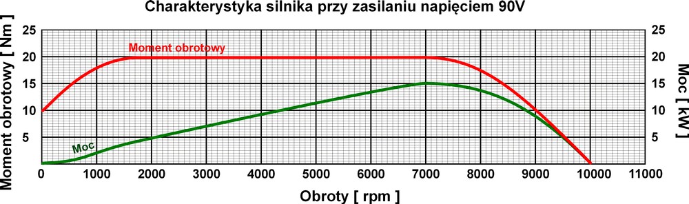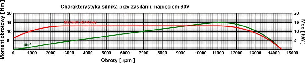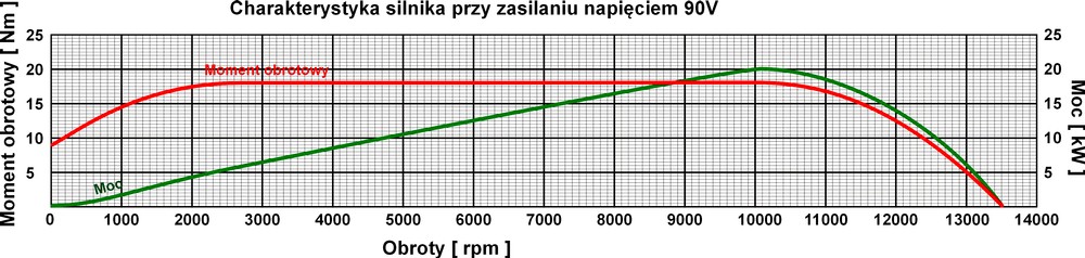 - Maksymalny prąd podawany do silnika 1000A, falownik powinien móc dostarczać co najmniej przez 20 sekund.
