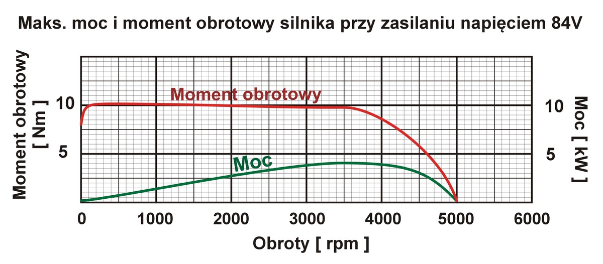 | Zestaw najbardziej polecany: do napędu skutera, motocykla, gokarta, quada, trójkołowca, buggy, lekkich pojazdów, pontonu, łódki, motorówki i innych lekkich jednostek pływających. Do pompy, podnośnika, wyciągarki i urządzeń które wymagają łagodny start. Moc silnika zależy od chłodzenia, im silnik jest lepiej chłodzony tym dłużej pracuje z maksymalną mocą. Aby zwiększyć chłodzenie, po bokach silnika można zamontować dwa mocne wentylatory. Gdy silnik jest bardzo dobrze chłodzony, to może bez przerwy pobierać prąd 30A, osiągając moc 2kW, oraz może przez 20 sekund pobierać prąd 60A, wtedy osiąga moc 4kW. Temperatura silnika nie może przekraczać 90°C. Obroty silnika zależą od napięcia, im wyższe napięcie na silnik, tym większe osiąga obroty. Gdy silnik jest zasilany napięciem 84V, to przy maksymalnej mocy osiąga około 3500 obrotów na minutę. UWAGA ! Przewody łączące sterownik z silnikiem powinny być jak najkrótsze. Złącze połączyć za pomocą lutowania i zabezpieczyć koszulką termokurczliwą. |