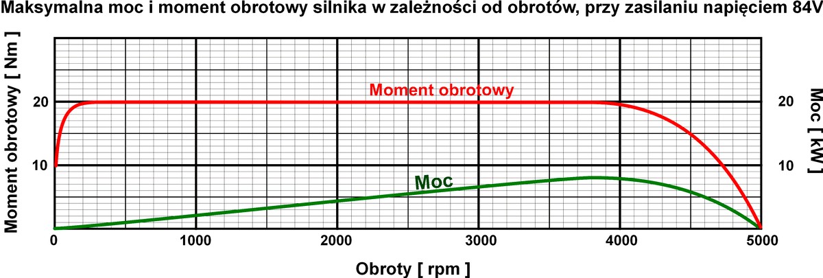 | Zestaw najbardziej polecany: do napędu skutera, motocykla, gokarta, quada, trójkołowca, buggy, lekkich pojazdów, pontonu, łódki, motorówki i innych lekkich jednostek pływających. Do pompy, podnośnika, wyciągarki i urządzeń które wymagają łagodny start. Moc silnika zależy od chłodzenia, im silnik jest lepiej chłodzony tym dłużej pracuje z maksymalną mocą. Aby zwiększyć chłodzenie, po bokach silnika można zamontować dwa mocne wentylatory. Gdy silnik jest bardzo dobrze chłodzony, to może bez przerwy pobierać prąd 60A, osiągając moc 4kW, oraz może przez 20 sekund pobierać prąd 120A, wtedy osiąga moc 8kW. Temperatura silnika nie może przekraczać 90°C. Obroty silnika zależą od napięcia, im wyższe napięcie na silnik, tym większe osiąga obroty. Gdy silnik jest zasilany napięciem 84V, to przy maksymalnej mocy osiąga około 3800 obrotów na minutę. UWAGA ! Przewody łączące sterownik z silnikiem powinny być jak najkrótsze. Powinny być łączone za pomocą lutowania, na złącze lutowane powinna być nałożona koszulka termokurczliwa. |